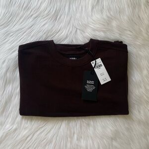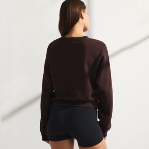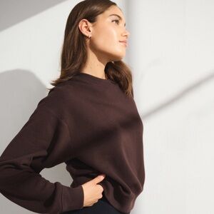 sweatshirt in a super soft french terry fleece fabric, featuring banded hem and cuffs and crew neckline. size x-small. color: coffee