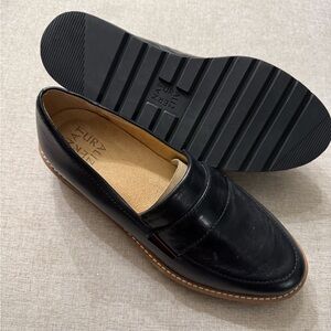 Sleek black leather loafers. Comfortable and stylish. Perfect for everyday wear.