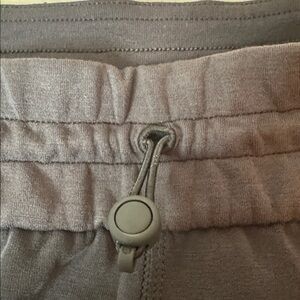 High rise, 4’ inseam, shockcord at waist to customize fit.