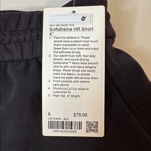 NWT Lululemon Softstreme High-Rise Short 4" - Black