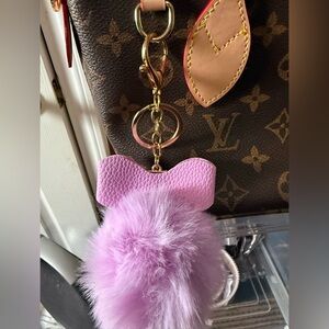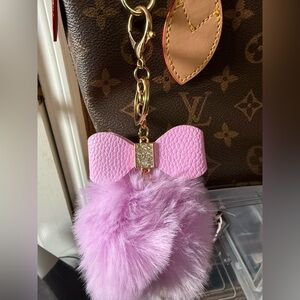 Pink bow Keychain / bag charm with fluffy pink Pom Pom. Purse is not included.