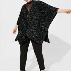 Gorgeous torrid Ruana with arm holes black with multi color sequins PlusSize / one size fits (Plus Size) & all brand new.