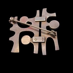The brooch appears to be handmade and is marked 925 for sterling silver, along with a distinctive maker’s mark that suggests individual craftsmanship.