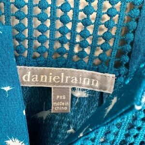 NWT Daniel Rainn Estefany Split Neck Blouse Teal Blue with White Size XSP