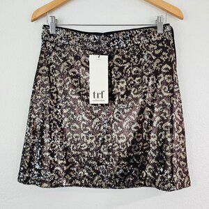 NWT ZARA Womens Sz L Sequin Gold Black Cheetah Mini Skirt Glam Party Night Out