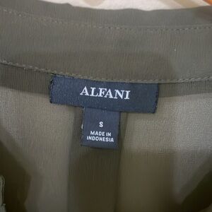 Alfani Green Pleated Button Down Shirt with Notched Collar Size S ( fits S- M )