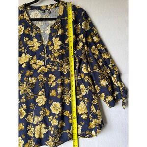 Ellen Tracey Blouse Women XL Multicolor Floral Tunic Long Sleeves Tie Cuffs