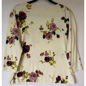 Kate Hill Top Women Petite Large Ivory Floral Scoop Neck 3/4 Sleeve Lightweight