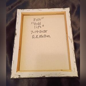 Gold Lips Original Acrylic Painting On Canvas Wall Decor Signed By Artist 8x10"