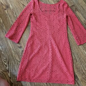 Lilly Pulitzer Crochet Marquette Dress Hot Bright Pink - Small Lined 3/4 Sleeve