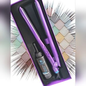 Description: This styling iron features non-stick ceramic tourmaline floating plates, far-infrared technology to protect the hair cuticle, and fast heating elements. The unique basin filtration system allows for an argan oil-infused solution to be vaporized, which deeply penetrates the hair shaft during styling to revitalize, add moisture, and restore shine and volume. It offers adjustable heat settings up to 450°F and has a 360-degree swivel cord.