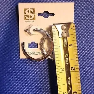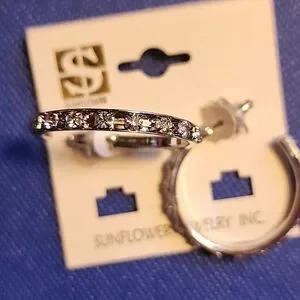 Silver Toned Studded Hoop Earrings With Faux Rhinestones