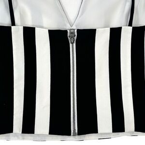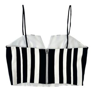 Alice + Olivia Black White Striped Sweetheart Neckline Sleeveless Linen Top sz 8