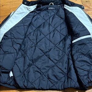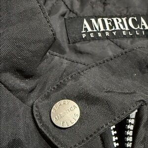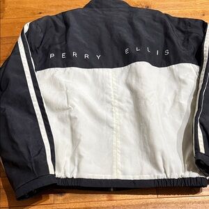 Bold Perry Ellis bomber with striking black and white design. Features a standout logo detail.