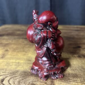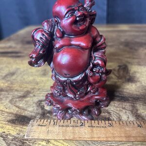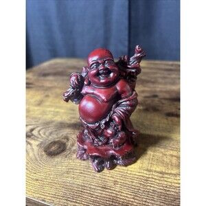 Buddha Vintage Laughing Fat Happy Figurine Red Dark Heavy 4" Carved Details MCM