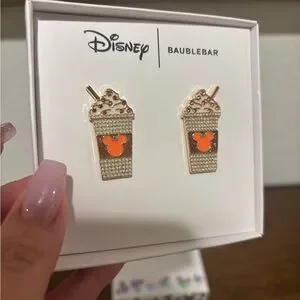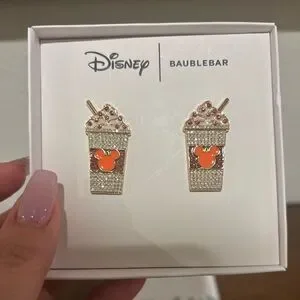 Charming Disney BaubleBar earrings featuring coffee cup design. Perfect for Disney fans.