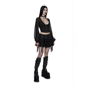 Dolls Kill Widow Pleasing Terrors Chiffon Corset Blouse Womens Size XL Black