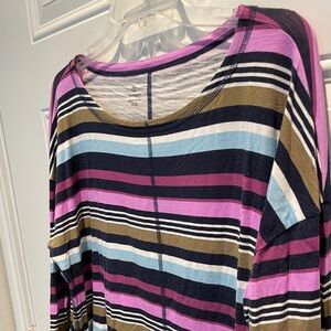T by Talbots Purple Striped Long Sleeve Top, XL Petite, Athleisure Active Sporty