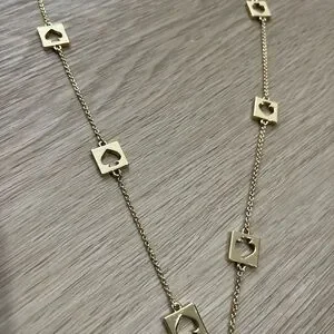 A Classic Kate Spade Square Spades long Necklace. This necklace is elegant, bold, displays a relentless strength and adapts to any style you wear. It is 34" full length which becomes a 17" necklace.