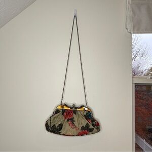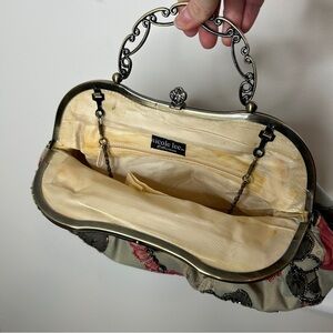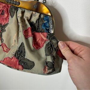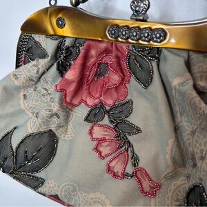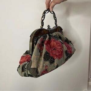 Vintage Floral Beaded Frame Purse Clutch Pink Green Brown