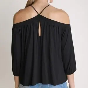 Gorgeous Black Off The Shoulder Chiffon Top Sz S