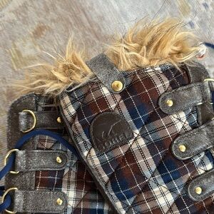 Textile and leather upper/faux fur lining/rubber sole.