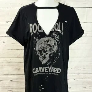 Torrid Vintage Rock and Roll Distressed V Neck Tee in Size 1