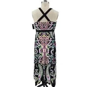 NWT INC International Concepts Polyester Maxi Dress Buddha Paisley Design Lined Bust with Pads Sz L