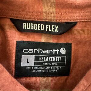 Carhartt Large Relaxed Rugged Flex Button Up Shirt Mens Orange Plaid Workwear