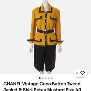 Beautiful 2 Piece Gold Yellow and Green Trimmed Skirt Suit Pearl Buttons. Chanel inspo. Skirt Suit Set