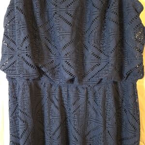 Kings Road Navy Lace Sleeveless Maxi Dress Elastic Stretch Waist Size XL