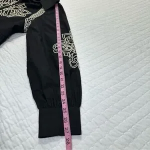 Elegant Button Down Black and Cream Embroidered Long Puff Sleeve Mini Dress