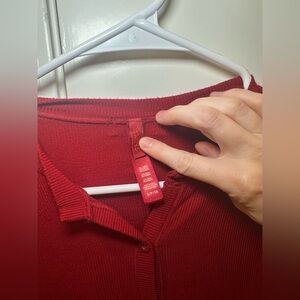 Skims Soft Lounge Long Sleeve Henley Romper in Red Size Small