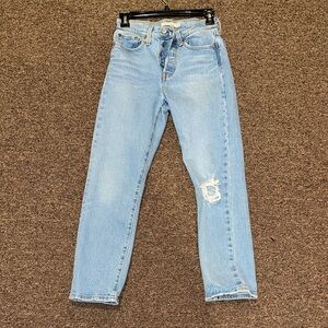 Stylish light blue jeans with a straight leg cut. Ideal for casual wear.
