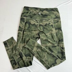 Zuty camouflage camo green exercise workout leggings LARGE with deep pockets