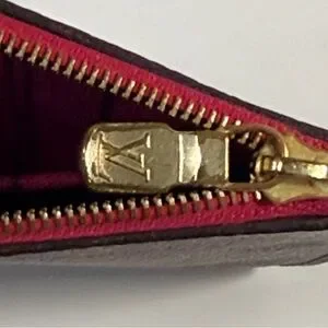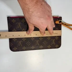 Louis Vuitton Neverfull Monogram Pochette Wristlet Pouch Clutch Red Pink Lining