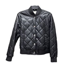 Very cute and cool looking Bomber coat in black faux leather. It is brand new but with no tag. There is puff inside to keep it warm and soft.