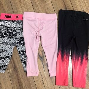Lot of 3 Nike toddler girls leggings. Light pink pair is in great shape. Other two show some wear. See pictures for details!