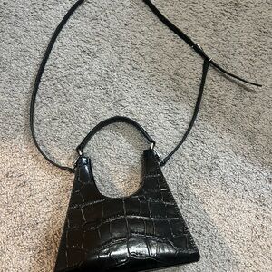 Chic and stylish STAUD Rey mini bag with crossbody strap. Features croc-embossed texture. Comes with dust bag.