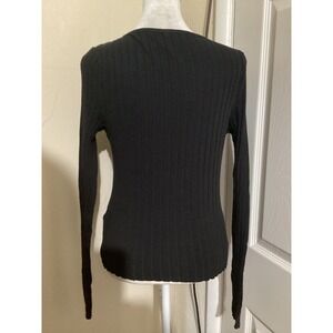 Free People Black Tilly Ribbed Button Up Long Sleeve Top M