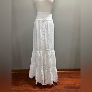 Chic White Tiered Maxi Skirt. Size S