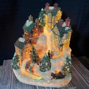Keywords: Christmas village, fiber optic, lighted display, holiday decor, winter scene, festive, table centerpiece, mantel decor, charming