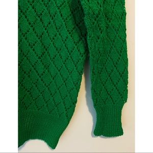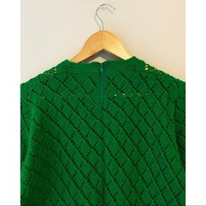Vintage Green Knit Crochet Sweater Pullover Jumper