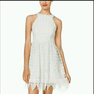 CITY STUDIO Mini Dress Crochet Lace Handkerchief Hem Summer Party White Size 9