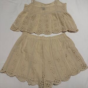 American Eagle Outfitters Beige Eyelet Set Size S