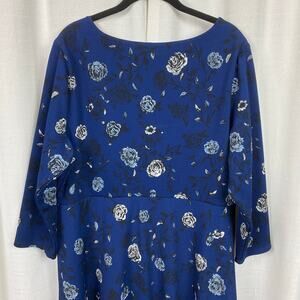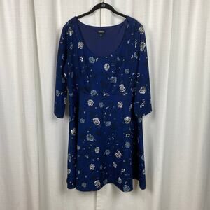 Torrid Blue Floral 3/4 Sleeve Skater Dress Sz.2