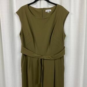 Calvin Klein Olive Green Sleeveless Waist Tie Wide Leg Cropped Jumpsuit Sz.12 NWT