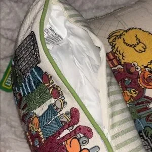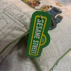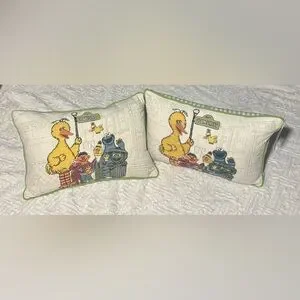 Pillows featuring beloved Sesame Street characters. Accented with green trim.