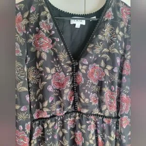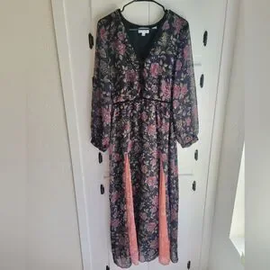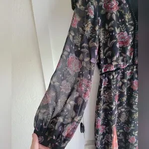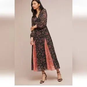 Anthropologie LAIA Ines Maxi Dress Black Floral Pleated Flare Sheath Small