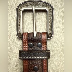Ariat Mens Two-tone Leather Belt-A10004305 Brown Silver Buckle Size 34 NWOT